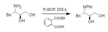 Aguilar et al. verwendeten Monoethylphthalat in Gegenwart einer Base (z. B. DIEA) und des Kondensationsreagenzes PyBOP, um die Amidreaktion zu fördern und so eine Pht-Schutzgruppe einzuführen.